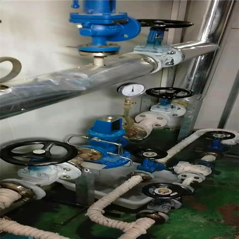 导阀型隔膜式蒸汽减压阀组设计规范运行操作: 1)要避免存留脏物、杂物进入蒸汽减压阀减压保障系统。新建或者改造工程的减压系统管网,很可能遗留沙粒、麻丝、杂物。投运前,一般都应进行水冲洗,满足清洁要求后,最后装上蒸汽减压阀和过滤器滤芯,这样才能避免杂物流入减压阀,杜绝减压阀卡芯现象。在系统进入工作后,保障减压系统的水流畅通与否,与设置在系统上的过滤器流通能力关系密切,如滤芯被杂物严重吸附,则会影响减压阀的工作,为此必需对过滤器进行定期检查,及时清除污秽。实践表明这项工作2至3个月必须进行一次,有些可调式(弹簧式、薄膜式)减压阀,其主阀或者导阀自身设置过滤器,同样需要定期拆洗滤芯。 2)1用1备的蒸汽减压阀组应定期轮换工作。设计时减压阀应两套并列安装(1用1备)。减压通路两侧都辅以波纹管密封截止阀,可启闭任一减压通道,为使并列的两套减压阀通道能正常工作,常规一个月轮流交换一次,搁置时间过长减压通道死水结垢,减压元件阀芯会卡住失效。 3)注意蒸汽减压阀的减压保障系统。无论选用比例式还是可调式减压阀,其减压比P1∶P2不宜选择过大,一般应控制在10∶1之内。超过这个范围易产生气蚀现象,损坏阀件,产生啸叫噪音。有些活塞式减压阀,制造厂在其阀体上加工一个直径1.5mm左右的小孔,其功能是让阀芯运动时起到透吸气作用,维护管理时应注意千万不要将小孔塞住,否则影响减压阀的正常运行。 4)加强蒸汽减压阀保障系统的管理,要注意观察减压阀本身的工作动态。阀前、阀后压力数值接近,表明减压阀本身已存在故障。即活塞式减压阀的阀芯与阀体间的平面密封橡胶件损坏;薄膜式可调型减压阀主阀膜片有裂痕及导阀连通管堵塞,造成减压阀减压作用削弱或者失效。