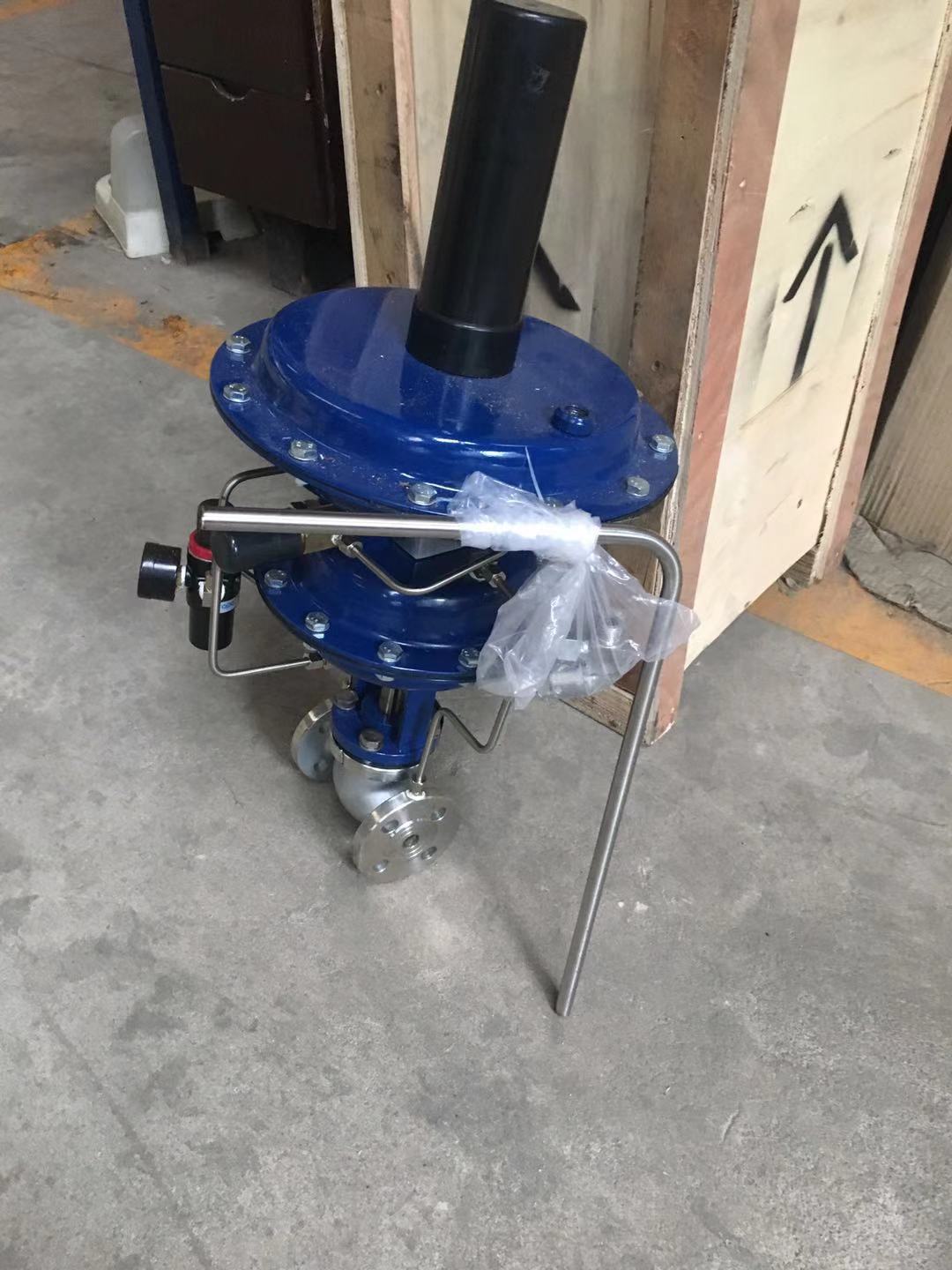当前储罐氮封主要用自力式调节阀进行氮气补压,用于氮封供气的自力式调节阀对入口压力有限制,通常需要减压后才能给自力式调节阀供气;由于用于氮封的自力式调节阀是阀后取压(内取压或外取压),阀后压力为阀门的动力源,因为阀后压力极低,膜片感应到的压力变化需要通过机械装置放大后才能驱动阀芯动作,因此阀后的稳定压力区间较大,而且不能做到紧密密封;同时阀后压力与储罐实际压力存在误差,给现场调试带来不便;自力式调节阀的流量与压力降成正比,即压力降大则流量大,压力降小流量小,不能实现瞬间快速补氮。