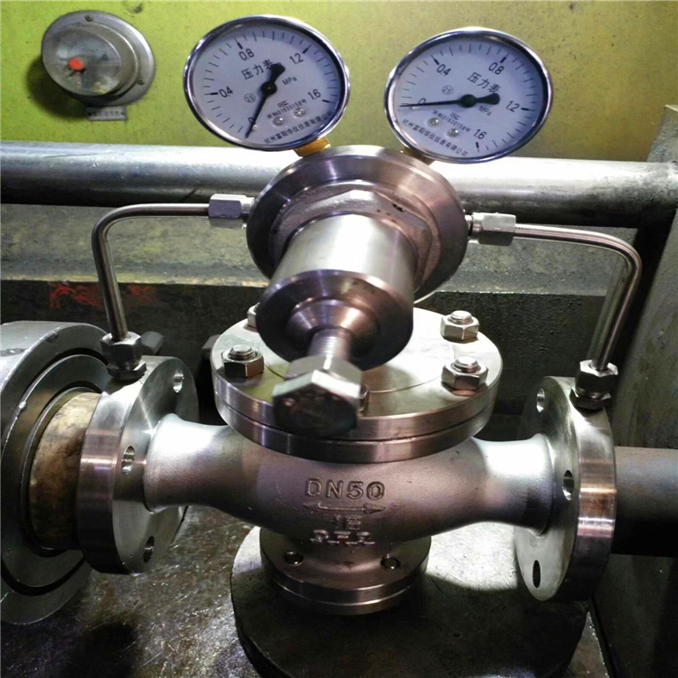 1) 关闭减压阀前的闸阀,开启减压阀后的闸阀,制造下游低压环境; 2) 将调节螺钉按逆时针旋转至最上位置(相对出口压力),然后关闭减压阀后闸阀; 3) 慢慢开启减压阀前的闸阀至全开; 4) 顺时针慢慢旋转调节螺钉,将出口压力调至所需要的压力(以阀后表压为准);调整好后,将锁紧螺母锁紧,打开减压阀后闸阀; 5) 如在调整时出口压力高于设定压力,须从步开始重新调整,即只能从低压向高压调。