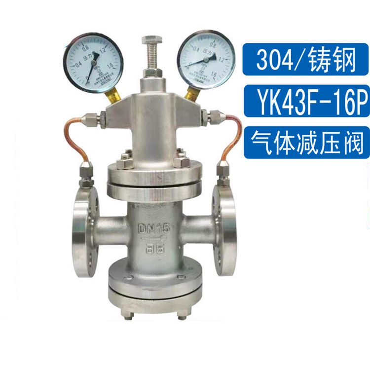 YK43F型气体减压阀主要零件材料 : 零件名称 | 零件材料 | 阀体 阀盖 底盖 | WCB/FCB* | 阀座 阀盘 | 2Cr13/304* | 缸套 | 2Cr13/25(镀硬铬)/304* | 活塞 | 2Cr13/铜合金/铜合金* | 活塞环 | 合金铸铁/对位聚苯* | 导阀座 导阀杆 |