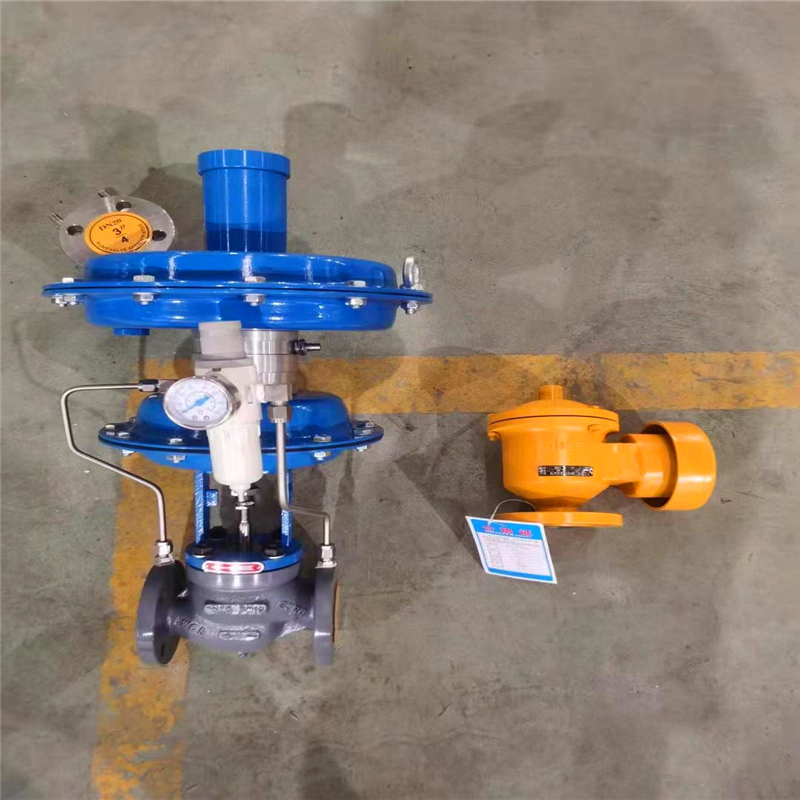 全不锈钢带指挥器自力式压力调节阀工作原理 氮封装置主要用于储罐顶部,来维持储罐的微正压,隔离物料与外界的接触,减少物料的挥发和浪费,保护储罐安全。目前,市面上氮封装置产品薄膜头水平置,无力臂结构,薄膜头与阀杆直接作用,薄膜头体积大,不紧凑,影响使用效果。