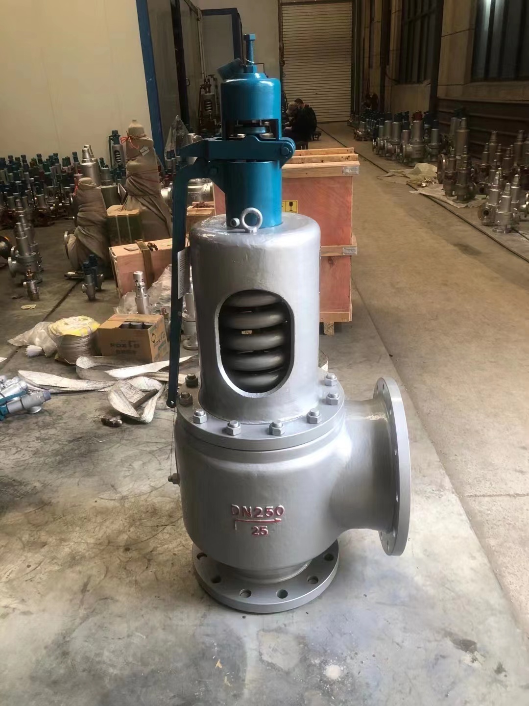 在上述的一种弹簧全启式安全阀中,所述定位杆从下至上依次包括螺纹部、定位部、复位零线、活动部以及警示部,所述活动部为黄色,所述警示部为红色。在上述的一种弹簧全启式安全阀中,所述定位部的环侧设置有多个等距设置的防回齿,所述防回齿为上窄下宽的锥台形结构,所述导向杆的外部套设有密封套,所述定位杆穿过密封套与外界相通,所述密封套的上端固定连接有套设于定位部环侧的定位环,所述定位环的内部设置有与防回齿相匹配的止回环,所述止回环采用聚酰亚胺材质。 高温高压蒸汽安全阀在A48安全阀的基础上增加了散热器,使弹簧更加容易散热,提高了阀门的使用温度,可用于300℃以上温度的蒸汽介质。