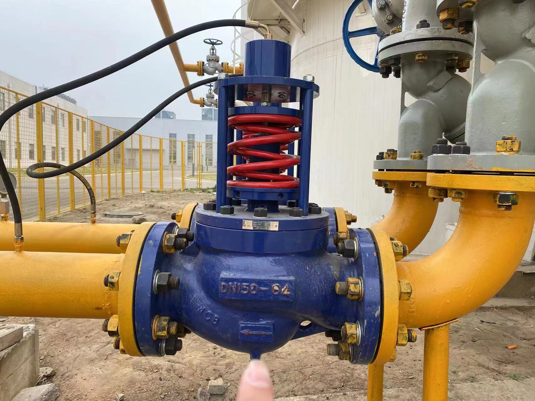 三、自力式天然气泄压切断调节阀操作指南安装方式: 1、直管段的设置 自力式调压阀应尽可能保持一定的直管段(一般为6D左右(管径))。 2、旁路系统的设置 为保证检修及出故障时生产能继续进行,设置旁路系统。 3、过滤器的设置 当工艺介质清洁且无杂质时,可省略该系统中的过滤器。 当介质中存在杂质或使用带导体的自力式调压阀时,应安装过滤器,以防止压力线或导体、卡住的气缸执行器和阀芯等受阻。 如果限于管道安装空间或资金,可以在阀门前面的截止阀上游处安装过滤网,取代过滤器。 4、安装方法与介质和温度的关系 1)自力式调压阀进行安装时,原则上宜采用气体介质正立安装(执行机构在上、阀体在下),液体与蒸汽介质倒装。 2)当气体介质温度高于70 ° c低于140 ° c、液体介质温度高于140 ° c 时,自力式调压阀不仅要上下颠倒,还要在引压管路上加隔离罐并在引压管路、隔离罐、膜头处注满冷媒,以防膜片受高温老化。 3)当气体介质温度高于70℃低于140℃时,如果安装仍是直立的,应在设计文件中注明采用高温膜片,否则普通隔膜会老化。