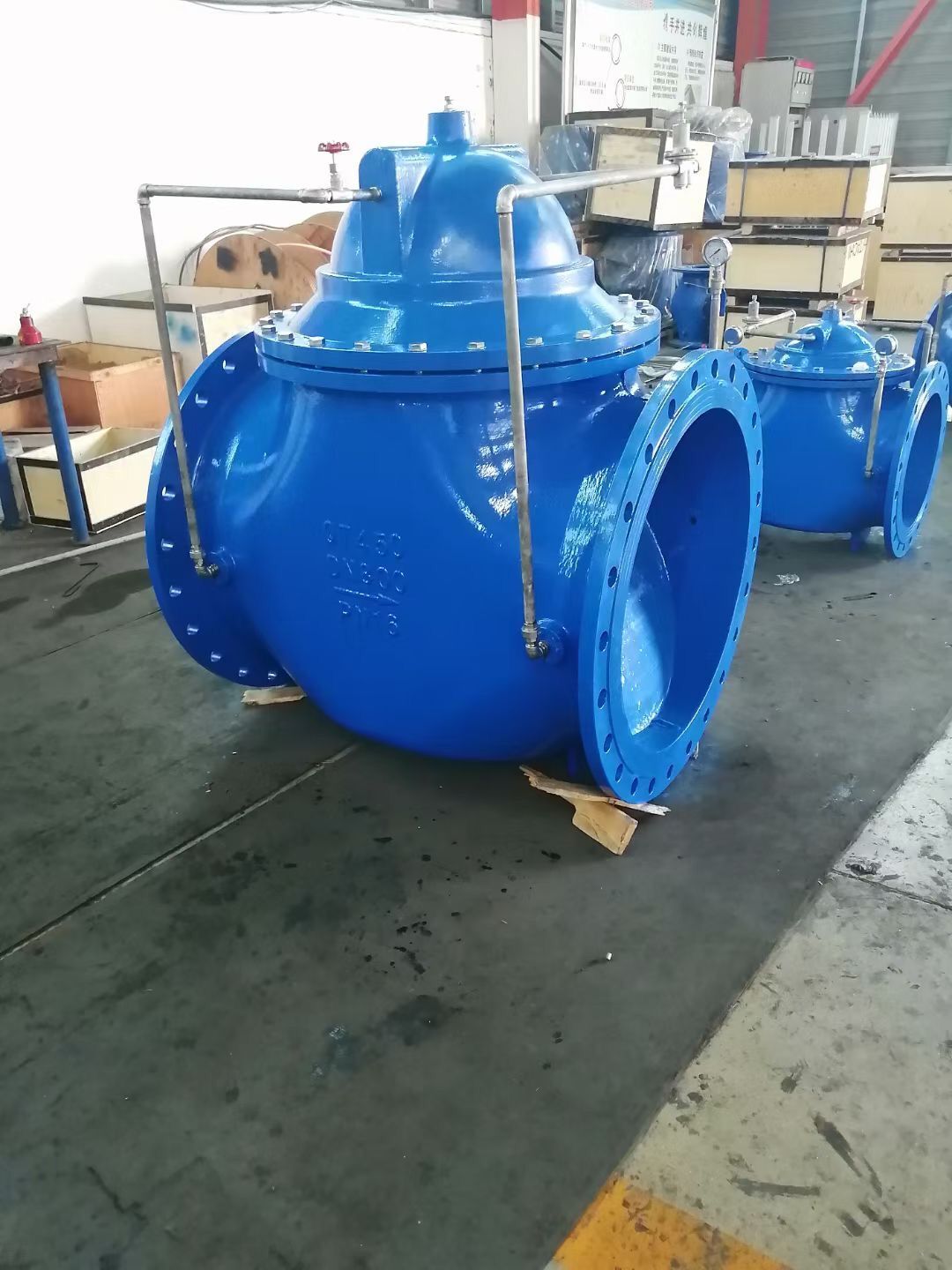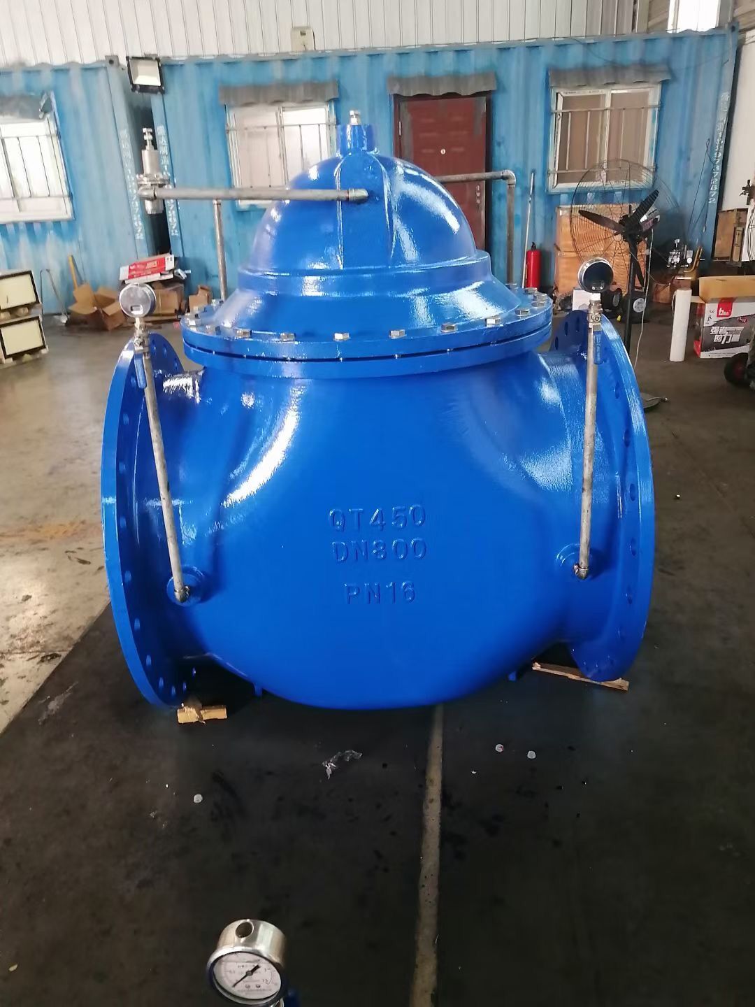 当阀后压力下降时:先导阀膜片下方压力下降,在调节弹簧作用下,导阀芯趋向开启。介质流出导阀流量变大,主阀膜片上腔压力下降。主阀芯在压力差作用下趋向打开,主阀出口压力上升,重新达到压力平衡。 200X先导式减压阀故障解决方案主要零件功能: 先导阀:设定阀后压力值,可以增加或减小主阀后压力。 进出口端压力表。可以观察主阀进出口压力值,方便调试。 压力表球阀。可以关闭压力表管路,方便更换压力表。 测试球阀。打开时主阀正常工作,关闭时,先导阀介质无法流出,主阀膜片上腔压力增大,主阀芯逐渐关闭。可以测试主阀是否正常工作。 针阀。调节开度可以改变主阀芯动作快慢,即主阀灵敏度。