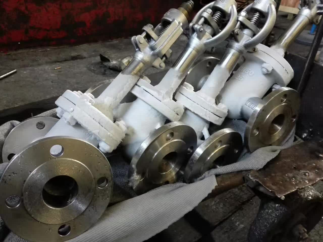 超低温深冷焊接式截止阀故障解决办法 低温截止阀通常指工作温度低于 的截止阀门,广泛应用于液化天然气,液化石油气体和其它低温行业。目前可制造适用温度达 -196℃ 的低温截止阀,全部零件采用液氮进行低温预处理,避免使用过程中密封变形泄露。低温截止阀是一种工作在低温气氢或液氢介质中,用来接通或切断管路介质的装置。针对在使用过程中出现阀门无法动作的问题,进行了故障分析,通过改进结构,使阀门正常运行于试验系统中。 低温截止阀主要是指介质使用温度在-196~-150度的低温液态介质系统中的截止阀。低温阀门,特别是超低温阀门,其工作温度极低。在设计这类阀门时,除了应遵循一般阀门的设计原则外,还有一些特殊的要求。