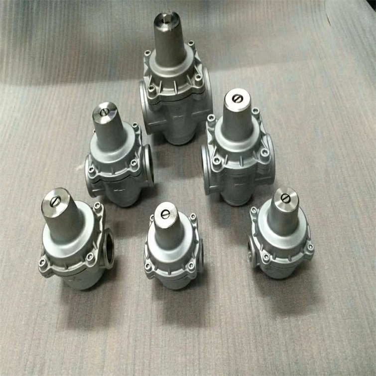 直饮水系统支管减压阀选型分析结构 采用直接作用隔膜式结构,内部结构非常简单,无卡阻,性能可靠,经久耐用。 支管减压阀特点 1、耐脏防水垢,不需过滤器,不需旁通管,配管极其简单,能节省大量空间和配管成本。 2、出口压力精密可调,在一般场合下,可以认为出口压力不受进口压力的影响(出口压力的变化量是△p1的8%)。的水力特性,压力损失小,减压比可达成10:1以上。 3、可满足多种减压要求,特别适用于支管减压系统。 支管减压阀可能的故障原因 霜冻损坏,在寒冷地区应注意保温。 1、水流方向装错,减压阀变成止回阀,出口压力为0。 2、弹簧拧得太紧,无法关闭,减压阀将直通p2=p1。 3、旁通管漏水,使p2偏离设定值,鉴于本减压阀*的可靠性和耐久性,建议不安装亮度通管为宜。