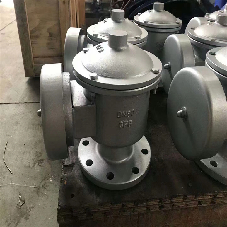 弹簧式呼吸阀是用弹簧限位阀板,由正负压力决定或呼或吸。还有重力式呼吸阀,是靠重力来调节的,当容器里面的气压达到超过重压时该阀打开卸压。具体描述:当储罐内压力与大气压力平衡时,呼吸阀呼出阀瓣与呼出口阀座严密配合,吸入阀瓣与吸入口阀座严密配合。当储罐内压力超过大气压力值(即产生过高正压)时,罐内高压直接作用于呼吸阀瓣下方,并克服阀瓣重力以及作用于阀瓣上的外气压力,从而打开呼吸阀瓣由A通道排出罐内过高气压,使罐内压力与大气压力保持平衡。当储罐内压力低于大气压值(即产生过低负压)时,大气压通过吸气通道B进入并直接作用于吸入口阀瓣下方,并克服阀瓣重力以及作用于阀瓣上方的罐内压力,从而打开吸入口阀瓣向储罐内补充压力,使罐内压力与大气压力保持平衡。