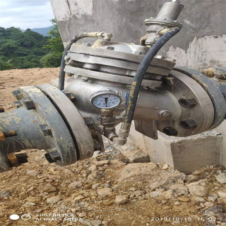 AX742X隔膜式安全泄压阀技术参数工作原理: 当管道从进水端给水时,水流过针阀进入主阀控制室,出口压力通过导管作用到导阀上,当出口压力高于导阀设定值时,导阀关闭,控制室停止排水,此时主阀控制室内压力升高并关闭主阀,出口压力不再升高。 当出口压力降到导阀设定压力时导阀开启,控制室向下游排水。由于导阀的排水量大于针阀的进水量,主阀控制室压力下降,进口压力使主阀开启。稳定状态下,控制室进水、排水相同,开度不变,出口压力不变。 调节导阀弹簧即可设定出口压力。